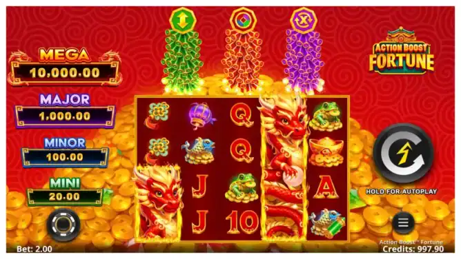 • Red Firecracker Action Boost™ – 10 Free Spins with jackpot coin collection for Mini, Minor, Major, or Mega.