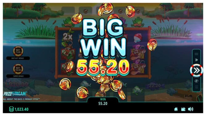 Set in a colorful pond world of mischievous frogs and hungry crocs, All About the Bass 2: Froggy Style™ blends lighthearted visuals with rewarding mechanics. The base game uses 21 paylines across 5 reels and includes multiple wild multipliers, instant fish prizes, and interactive bonus rounds. Trigger All About the Bass™ to hook prizes beneath your reel, or watch as the Froggy Style Feature turns bugs into matching symbols. Add in the Crocodile Feature for instant prize collections, and finish it off with a full Bonus Round that’s hopping with multipliers and credit boosts.