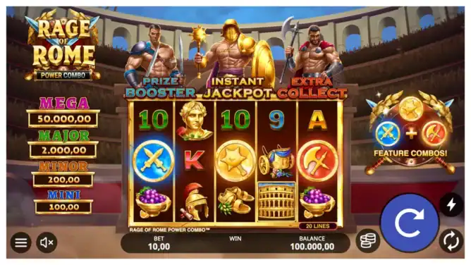 The crowd chants your name as the gates rise—Rage of Rome Power Combo puts you in the heart of the Colosseum. This slot is drenched in the drama of battle, where the Power Combo™ mechanic lets you unleash three bonus features at once. The question is: will you walk away with treasure or fall to the sands of history?